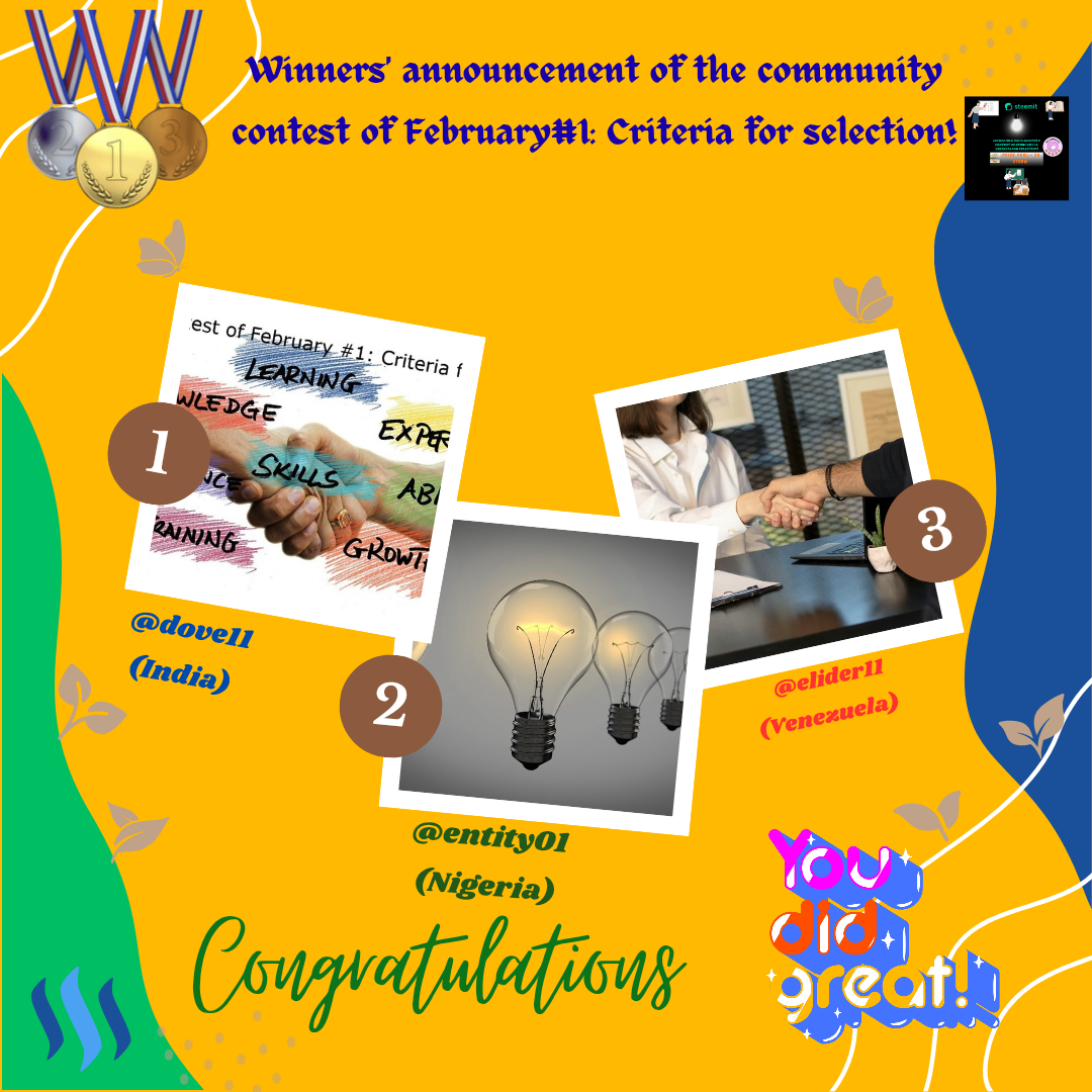 Winners' announcement of the community contest of February#1: Criteria for selection!