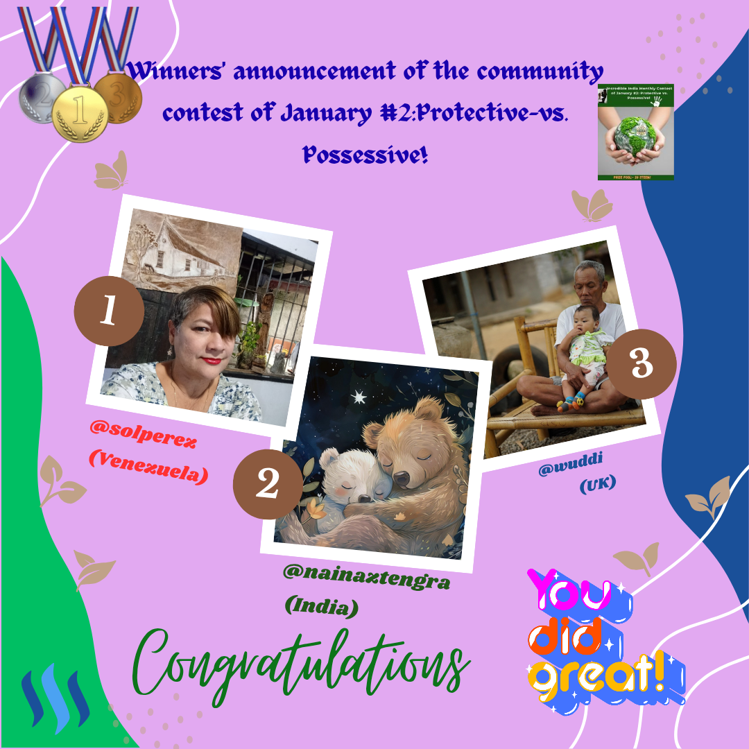Winners' announcement of the community contest of January #2:Protective-vs. Possessive!