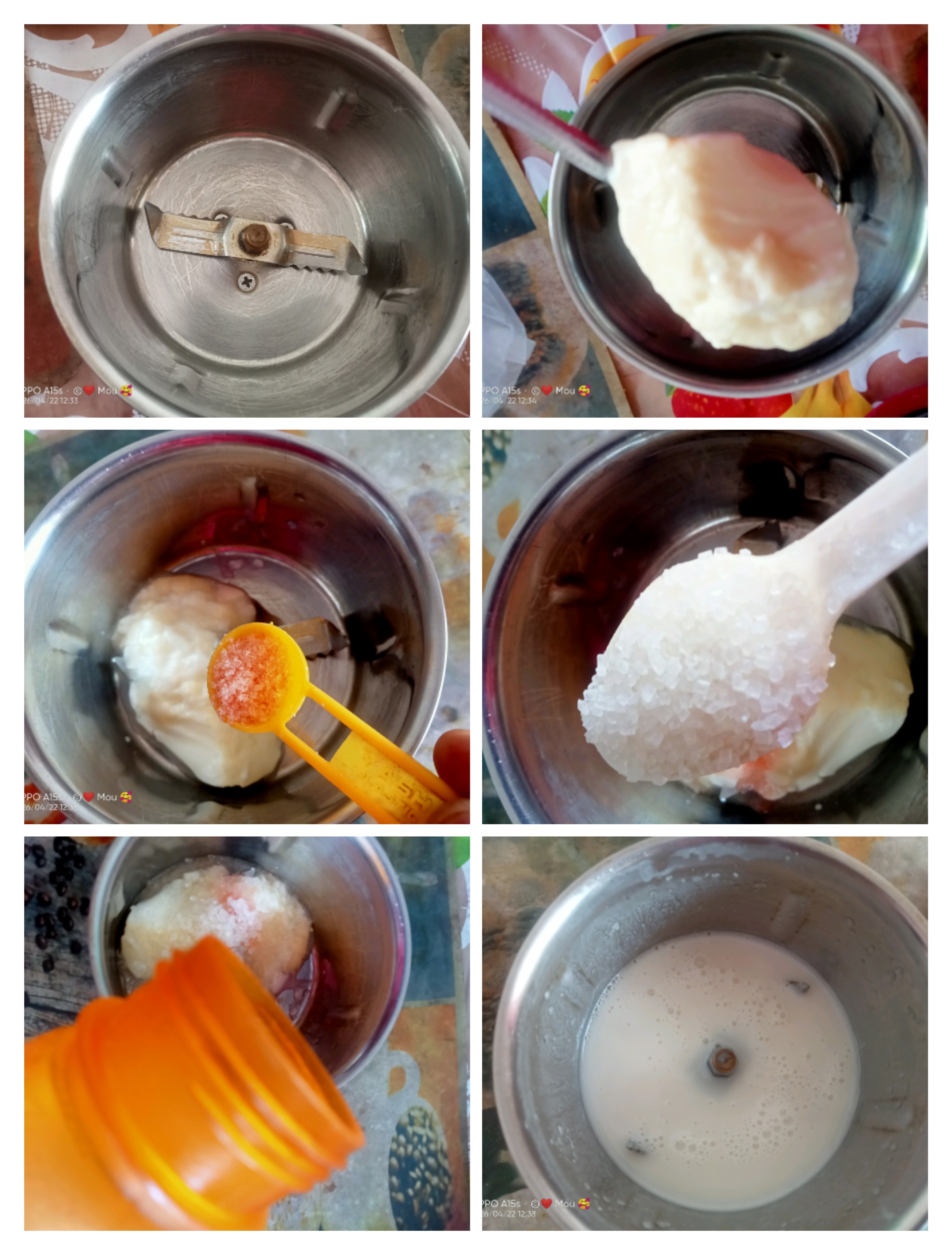 প্রথমেই নিয়ে নিয়েছিলাম একটা মিক্সার গ্রাইন্ডার।ওর মধ্যে পরিমাণ মতো টক দই সামান্য বিট লবণ আর পরিমাণমতো চিনি আর ফ্রিজের ঠান্ডা জল দিয়ে পেস্ট করে নিয়েছিলাম। মিক্সার গ্রাইন্ডারে পেস্ট করে নিলে উপকরণগুলো খুব ভালোভাবে মিশে যায় আর দই মিশ্রণটা খুব মসৃণ হয়। চিনি খুব ভালো ভাবে গলে যায়।