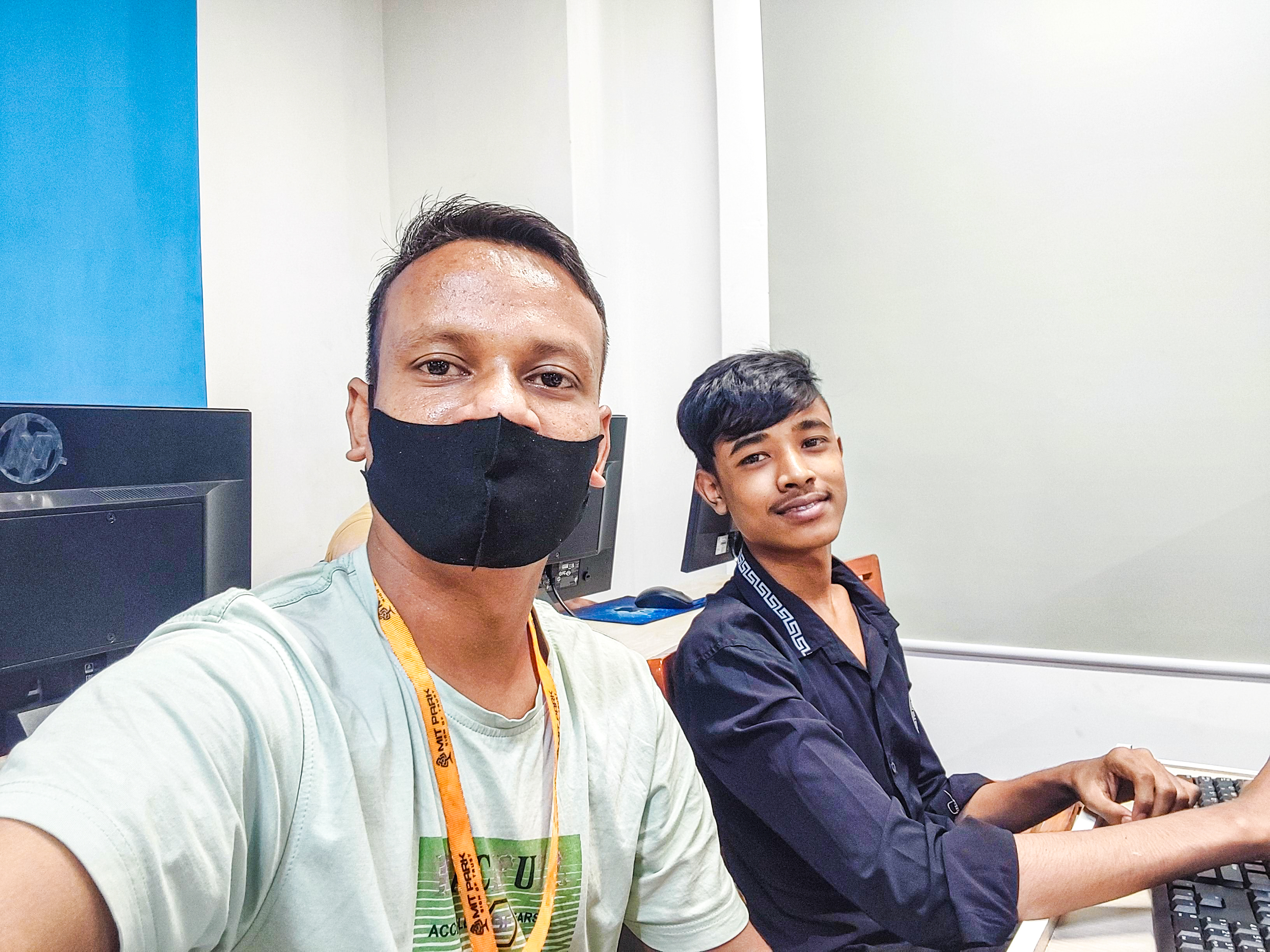 I also had classmates in the class who are much younger and older than me. While discussing the work with friends in the class, our sir came to the class. And our class started today we will be taught to create product packet design.