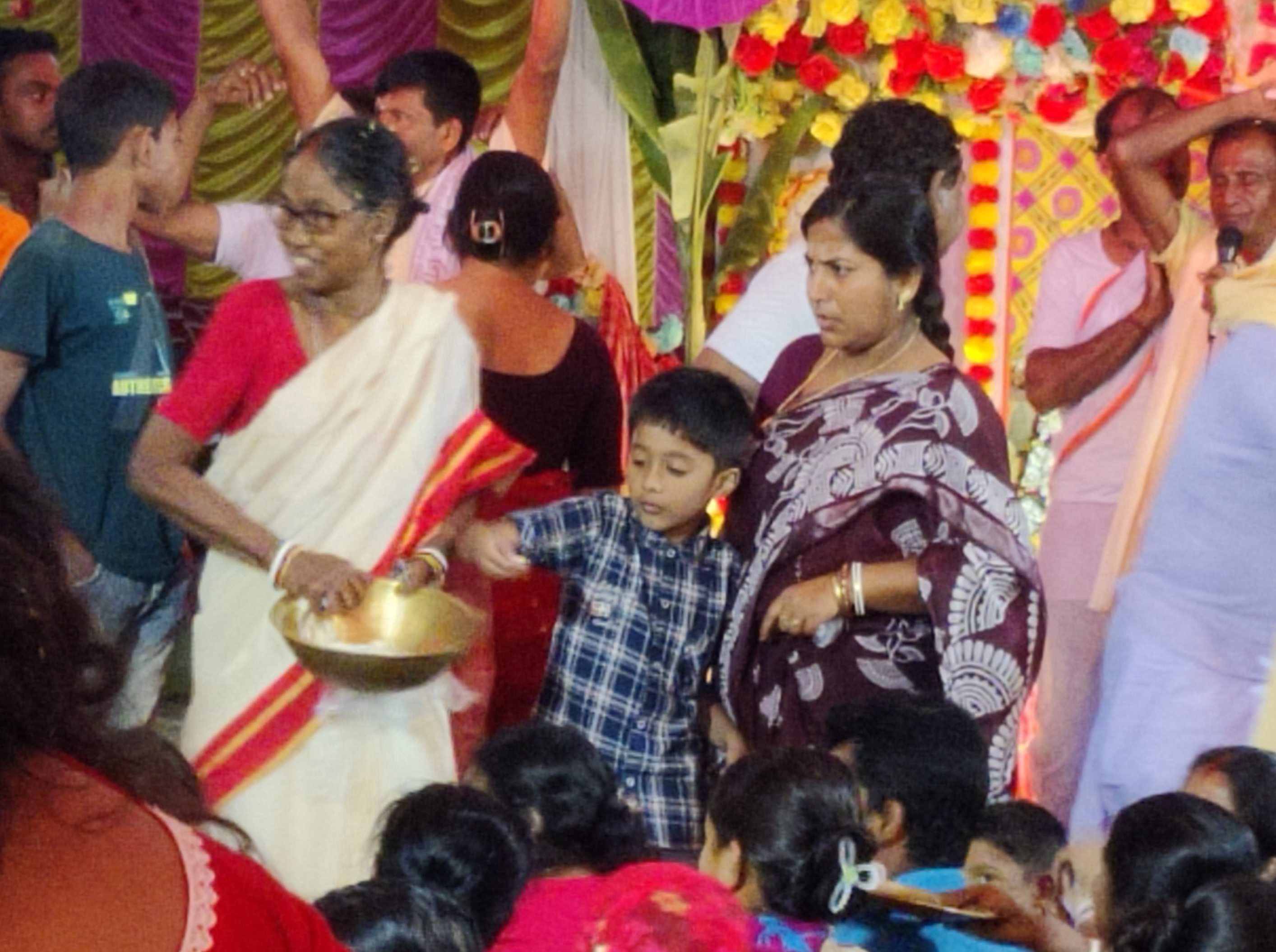 তাই অনুষ্ঠানের শেষে সকলে যখন বাতাসা প্রসাদ হিসেবে সকলের মাঝে ছড়িয়ে দিচ্ছিলো, তিনিও তাতানকে সাথে নিয়ে সেখানে গিয়ে বাতাসা ছড়িয়ে ছিলেন। প্রসাদ হিসেবে কয়েকটা বাতাসা ও চকলেট আমিও কুড়িয়ে পেয়েছিলাম। আর তাতানও এই বিষয়টা প্রথমবার দেখে খুবই উপভোগ করেছিলো।