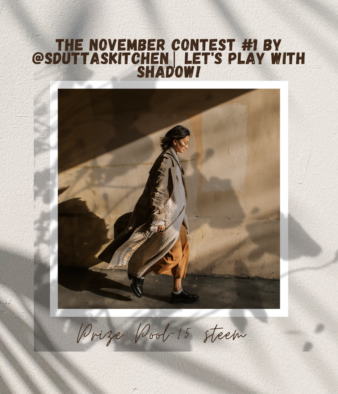 - The title of the post will be:-The November #1 contest by @sduttaskitchen|Let's play with shadow!