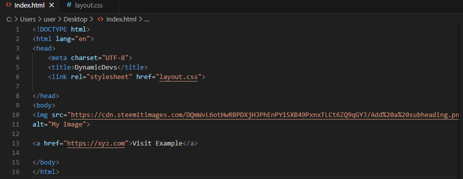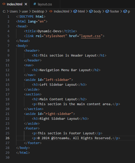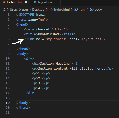 Open Your Editor and create two files name one Index.html and the other layout.css.