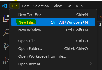 2️⃣ In order to create a new file with name "Index.html", click to File and select New file.
