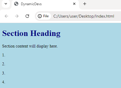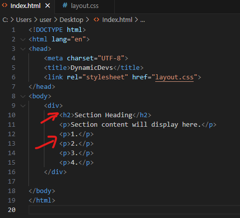 ➜ HTML uses Tags to specify section.