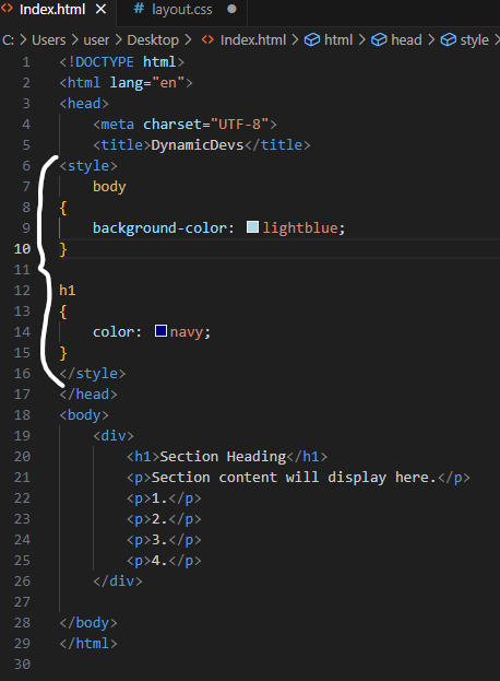 ➜ For external CSS file, it needs to linked in to the HTML file.