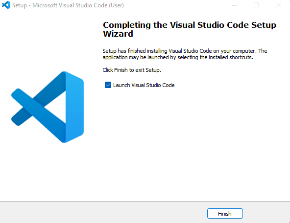 ➤ Once the installation is completed. Click to Finish and then Microsoft Visual Studio Code will open.