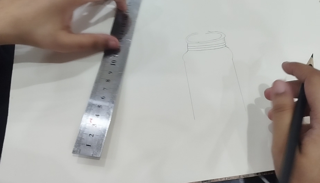 - Now I drew the lower part of the vasein vertical style vase for that I used ruler and finished till bottom.