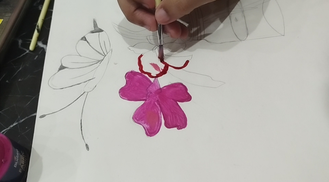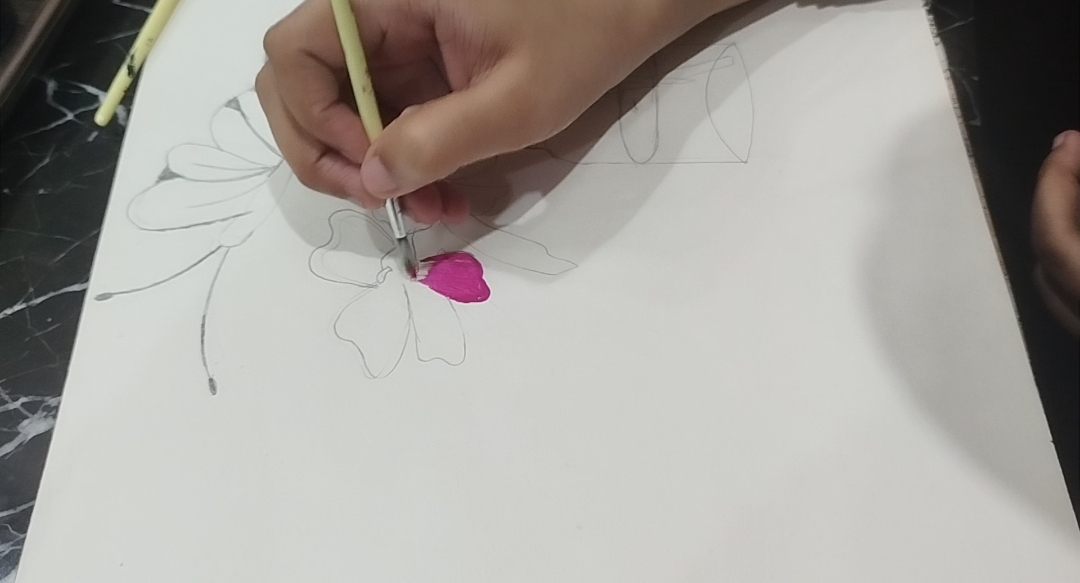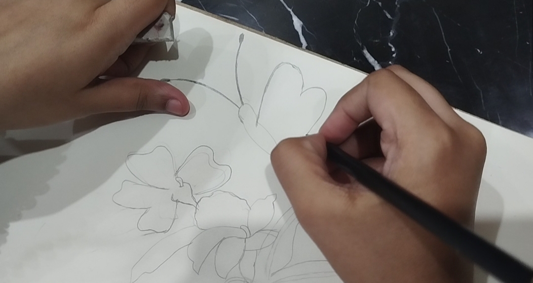 - At the end I drew a little size butterfly 🦋 near the flower to give realistic look to my drawing.Naje sure your skatch were made with light pencil because you filled it with water colours.