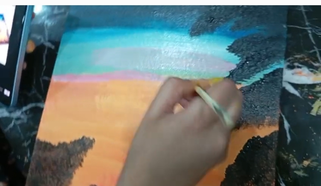 Now blended the orange and yellow very well ,we got the perfect shade that needs for this scenery.
