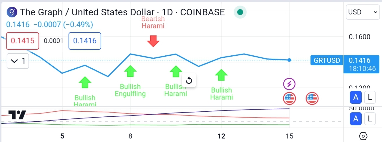 The Graph (GRT) menunjukkan potensi luar biasa sebagai kekuatan pelopor dalam domain mesin pencari blockchain! Analisis teknis terkini mengungkap sinyal bullish yang menjanjikan, seperti munculnya dua pola bullish harami berturut-turut. Indikator positif ini sangat menarik mengingat prospek yang sebelumnya hati-hati tercermin dalam metrik ADX dan DI.