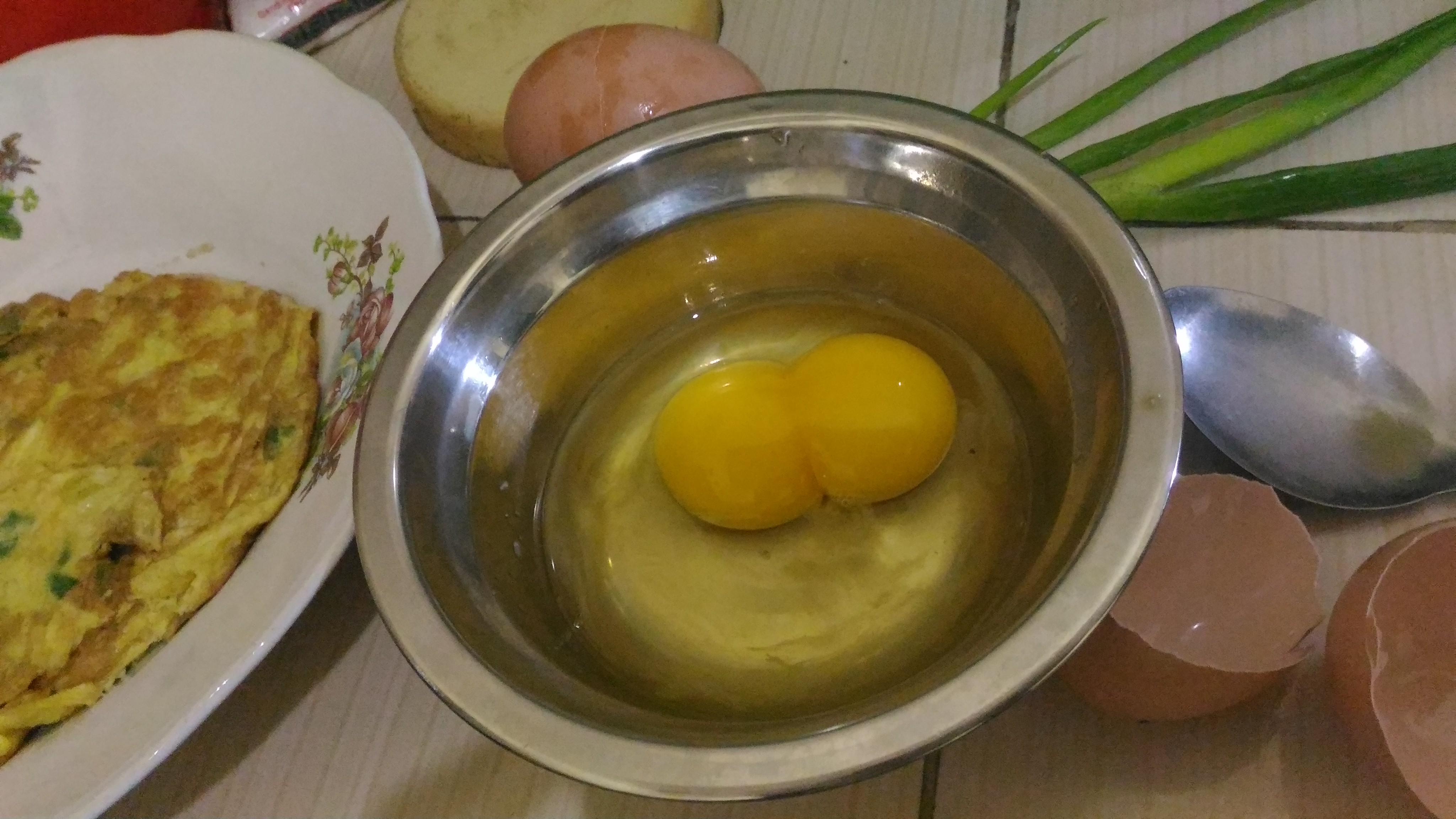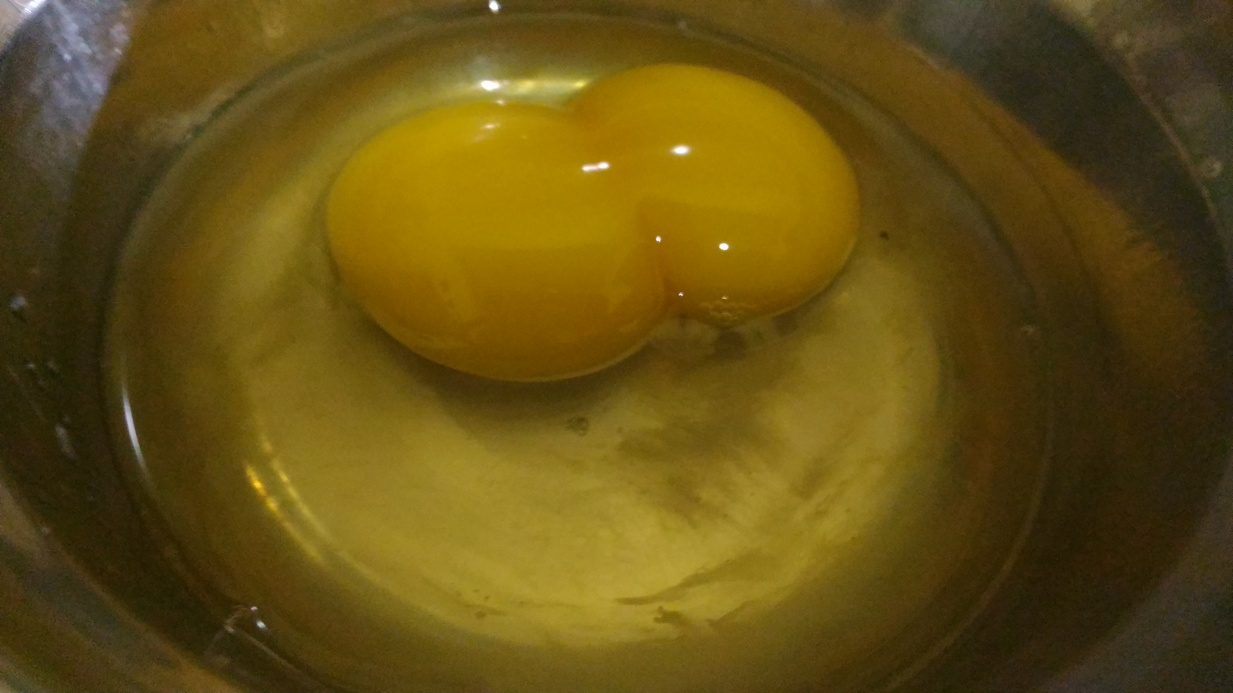 Merasa terberkati ketika hendak mengocok telur ayam, eh satu butir berisi dua buah kuning telurnya. Alhamdulillah. Dan ini terjadi pada beberapa butir telur lainnya.