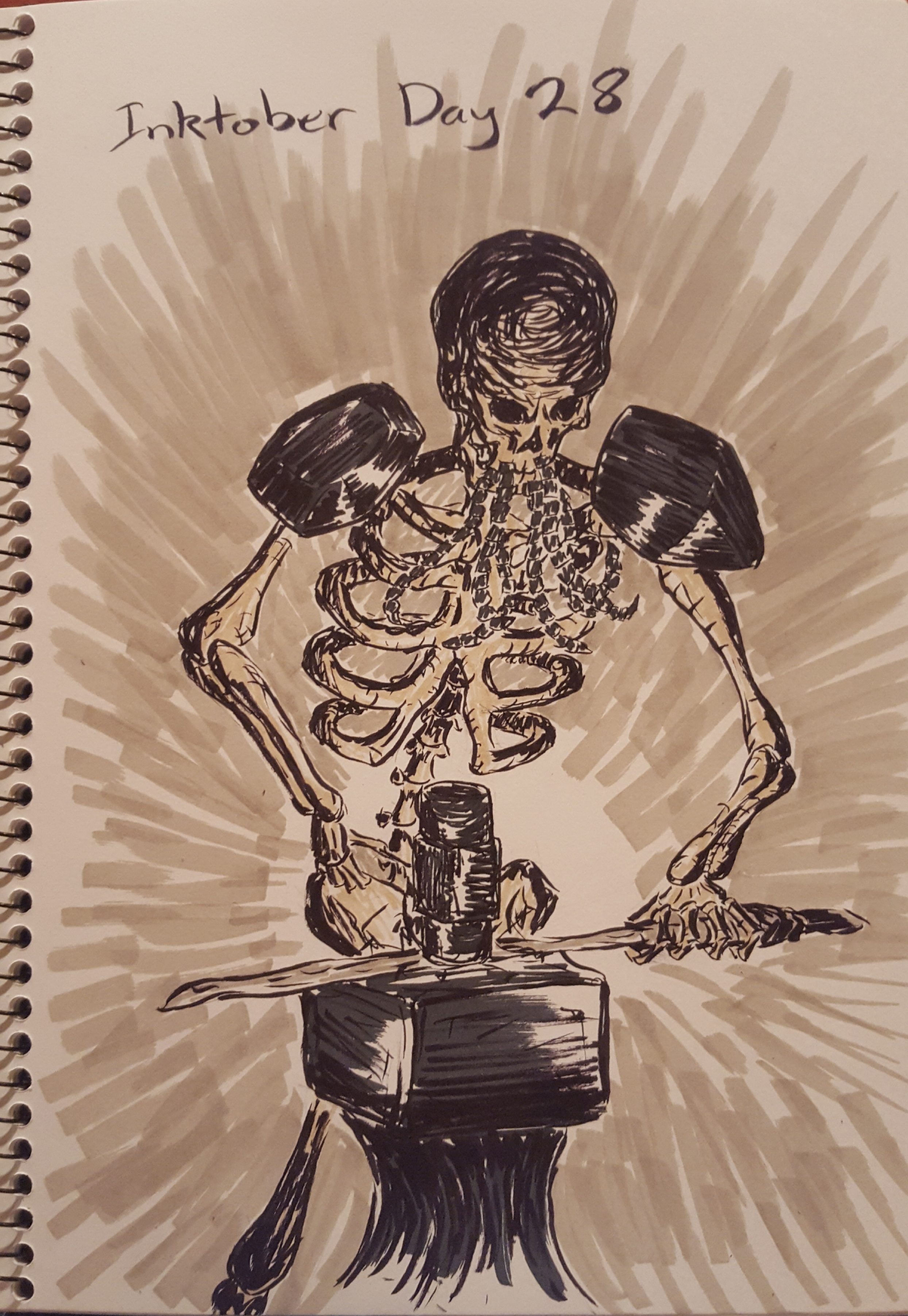A friend suggested a skeleton blacksmith, so i drew the blacksmith Vamos from DarkSouls.