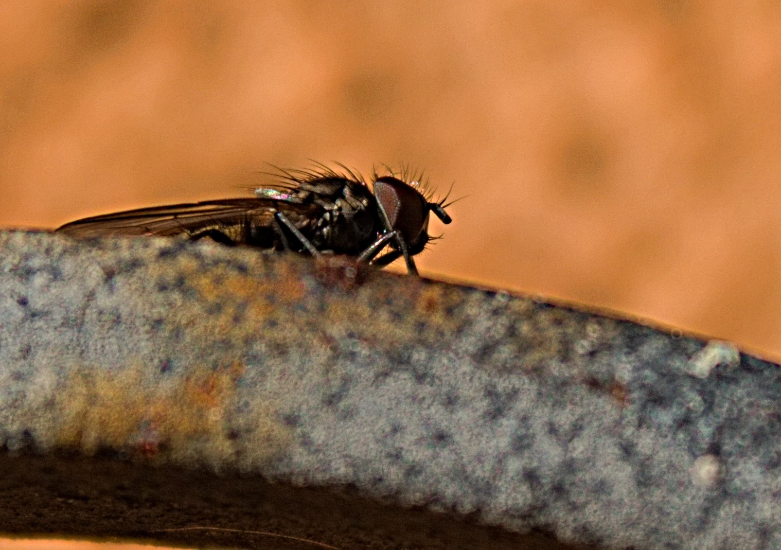 I caught this one sunning itself. I got off a couple shots before it flew up on the wall.