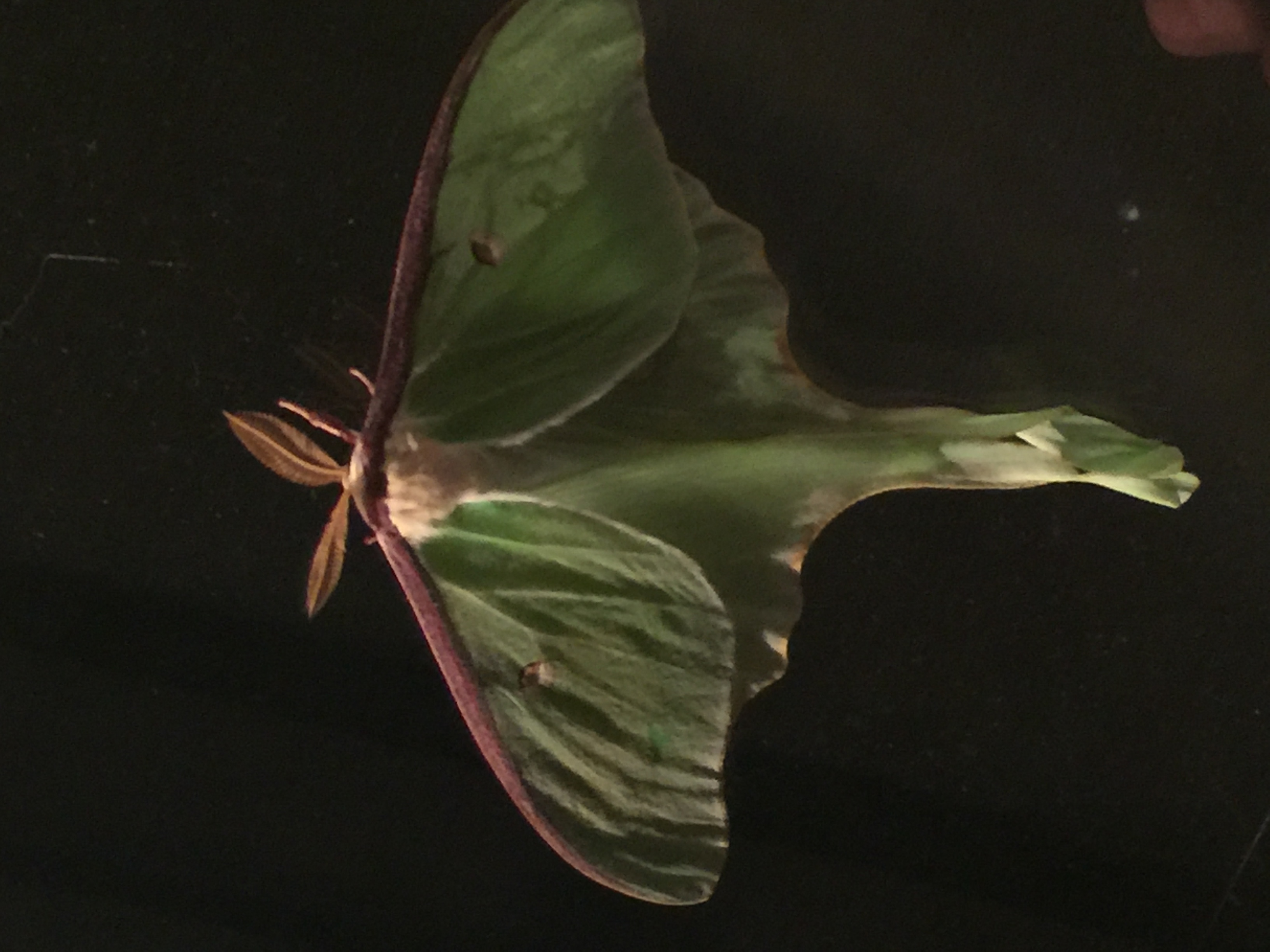 Luna Moth !!!denwa (41)in #insects • 8 years ago (edited) Luna Moth on our deck last night. We got some really great pictures of him reflected off the glass They are only found in North America. This one was found in Vermont. #luna #moths #nature #photography