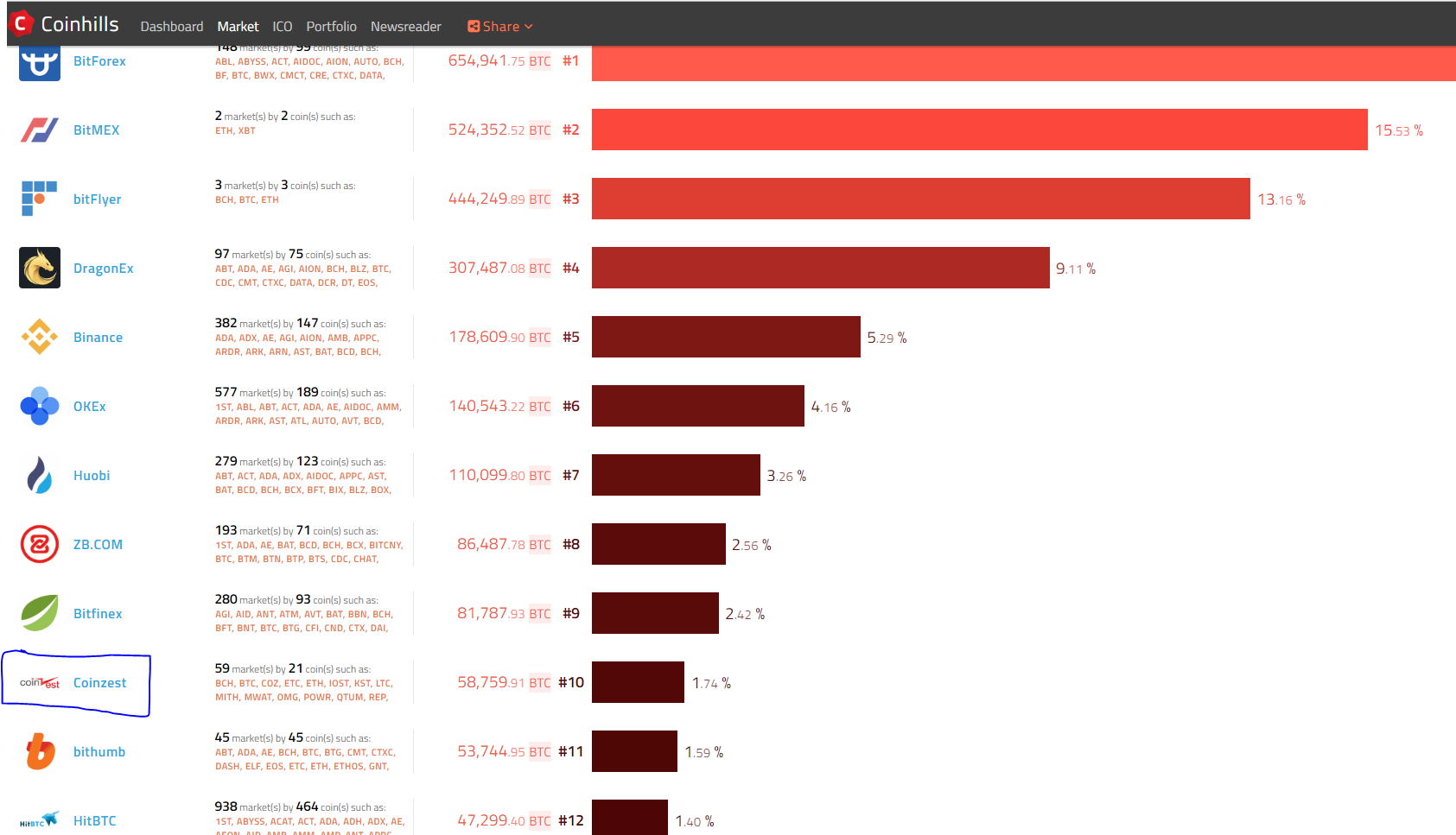 코인제스트는 2018년 9월 14일 현재, 암호화폐 종합 정보 사이트인 Coin hills 기준으로 전세계 거래량 10위이며, 한국 거래소 중 1위인 거래소입니다.