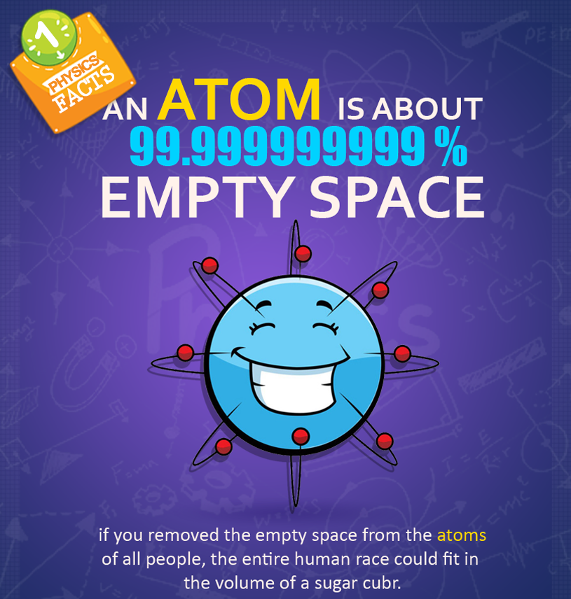 We know that everything in the universe made up of tiny particles called atoms. An atom is a tiny particle that can't be subdivided. an atom is composed of elementary particles like electrons, protons, and neutrons. here I am going to tell you an interesting fact about an atom is that about 99.999999999999% atom is emapty.