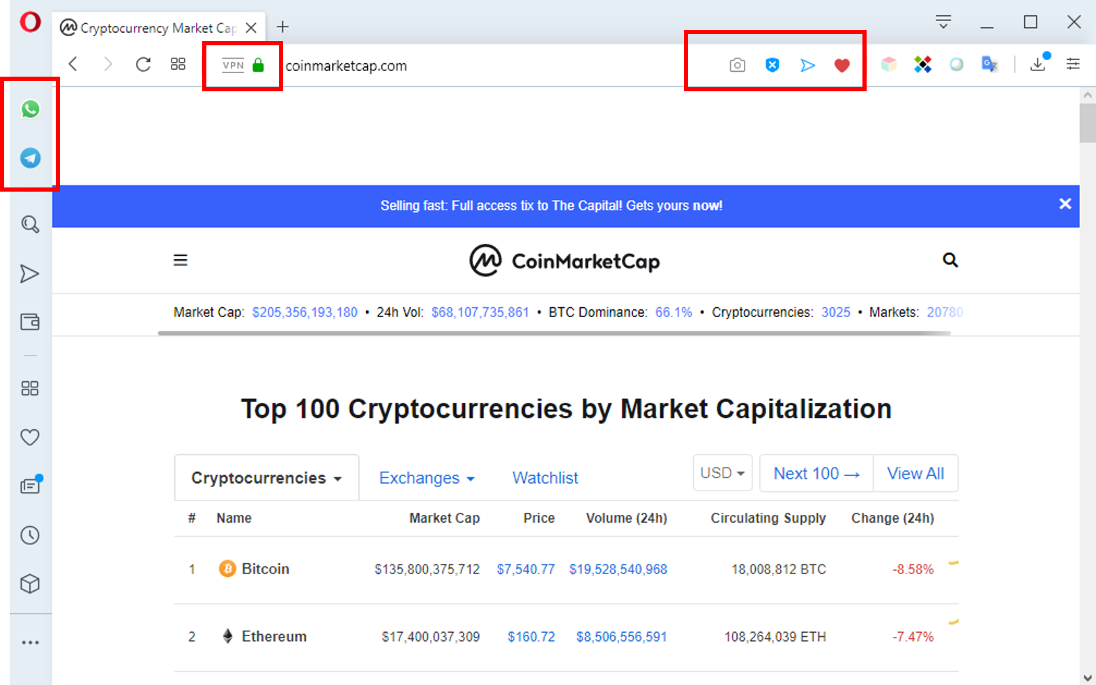 Opera is an amazing browser that includes an Ethereum wallet + Whatsapp integration, VPN, ad blocker and something called myflow, where you can send notes between two or more devices. It's very very useful and free.