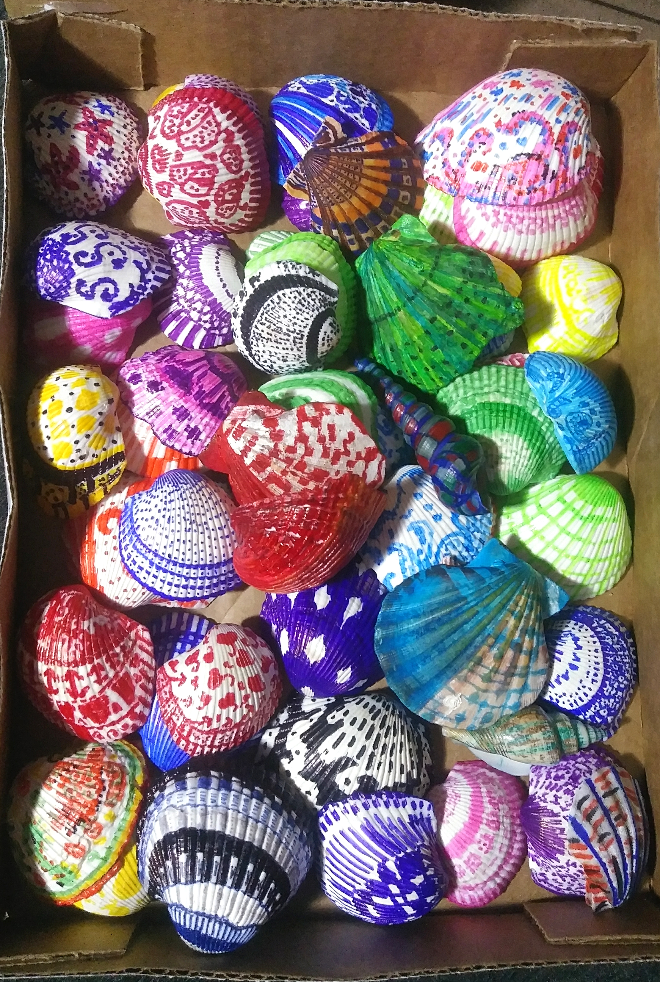 Thanks to the fluid drain, & Drs orders that i basically couldn't do anything, most of my time has been spent running to Drs appts, lying on the couch turning into a TV potato, J coloring shells. Yes. You've heard that right. Coloring sea shells.