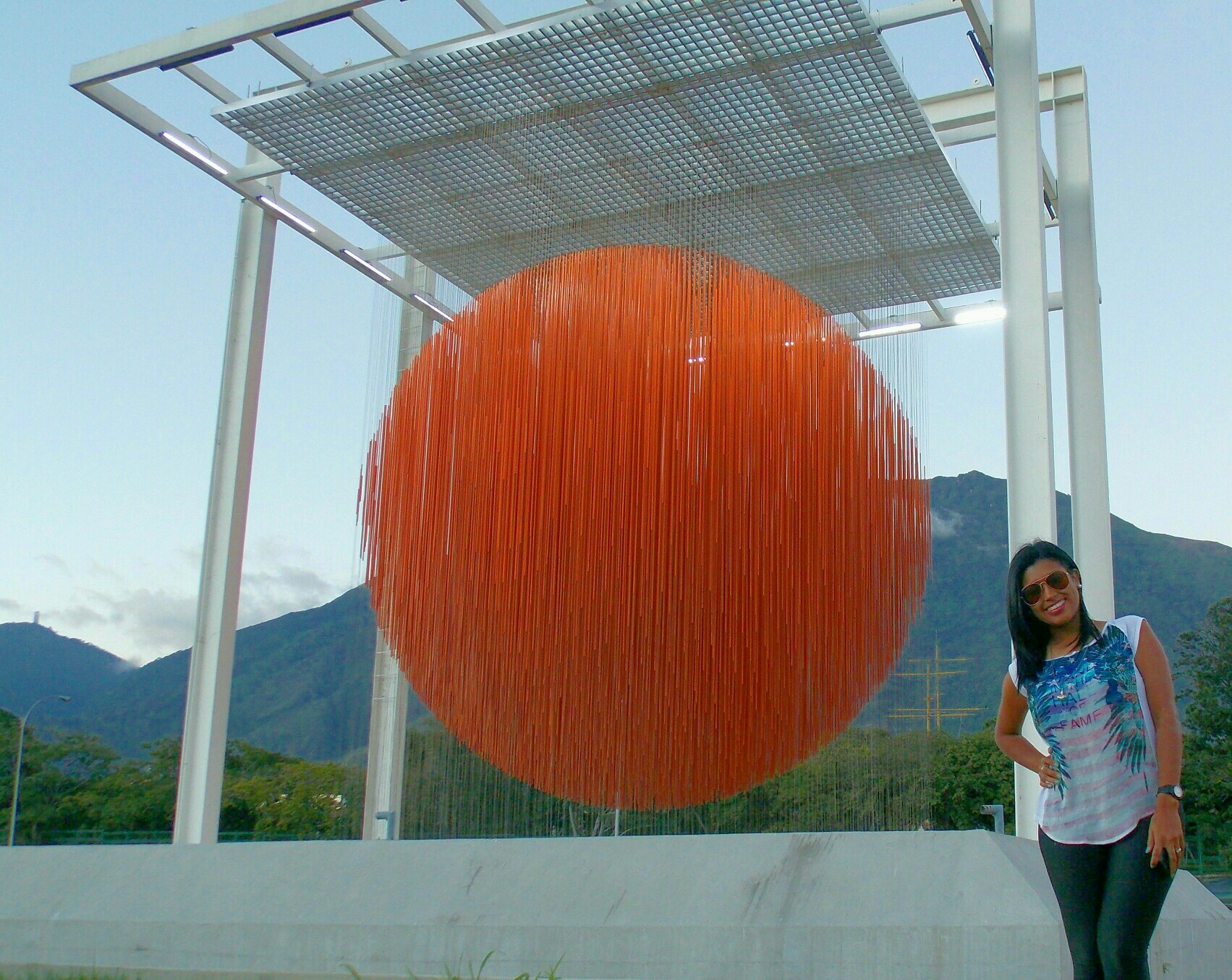 En esta imagen les muestro un bonito lugar de mi ciudad Caracas con el cerro el Avila de fondo y la obra que allí ven es de Jesús Soto un artista Venezolano.