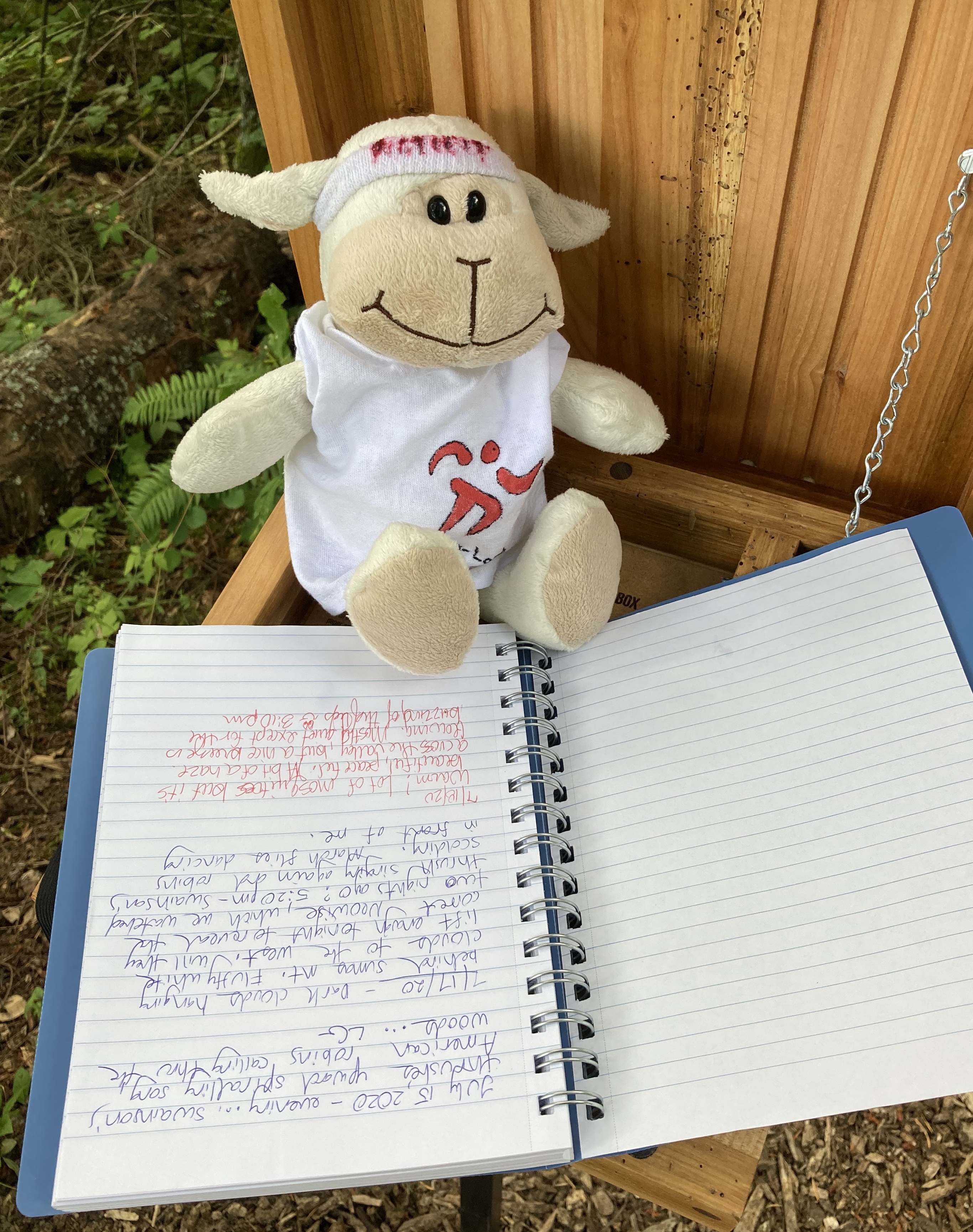 We were on the Buckhorn Loop trail at the box and bench that some people put up. I climbed up into the box to get the book