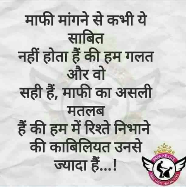 गलती करने पर माफी मांग लेना बहुत हिम्मत का काम होता है। गलती तो हर किसी से हो जाती है लेकिन किसी के अंदर भी इतनी हिम्मत नहीं होती कि वो झुकना सीख जाएं। जिस इंसान से झुकना सीख लिया अपनी गलती न होते हुए भी वो इंसान एक दिन बहुत बड़ा मुकाम हासिल कर लेता है। किसी ने ठीक ही कहा है गुस्सा करना आसान होता है लेकिन इसे पालना मुश्किल। माफी मांग लेने से कोई छोटा या बड़ा नहीं होता।