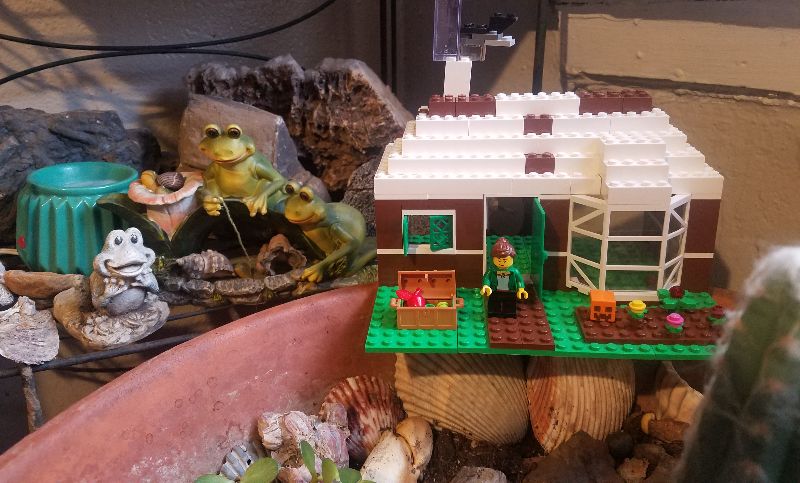 The trail is dark and surrounded by the forest’s thick foliage. The smell of damp earth radiates from the ground. Ahead is a clearing with a small cottage basking in the sun’s warm rays. It is surrounded by gardens of flowers, vegetables, and fruit. Frogs hop from one shady patch to another. A calm, young beauty comes out the front door.