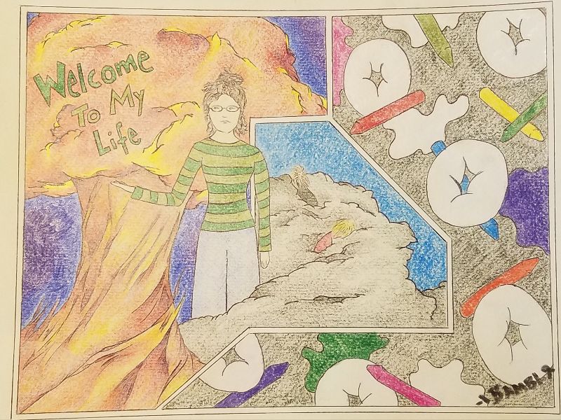 Suddenly, the dream world comes crashing down as two boys begin screeching, while running dizzying circles around her. They run so fast you can see smoke coming off their tiny feet. The beautiful forest cottage turns to a messy living room, with the signs of a recently finished powdered donut breakfast. There is a trail of milk haphazardly leading to the dining room, where the table is covered in crayons, paint, and tiny scraps of paper. The woman looks up exasperated, "Welcome to my world."