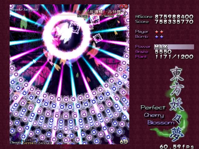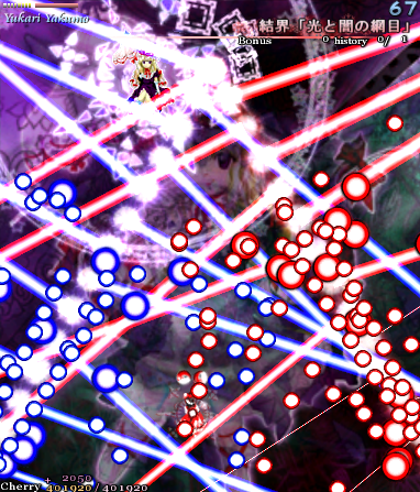 妖々夢の特徴の一つに、敵の弾が圧倒的に多く、しかも弾幕が美しいので、そこに魅かれるプレイヤーは多いですね!