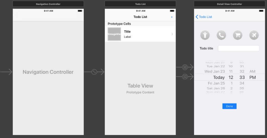 04.Todo (date / navi)gunw (25)in #ios • 7 years ago 기본 스토리보드 구성 모델파일 작성 dateFormatter를 이용한 날짜 계산 segue를 이용한 화면 전환 셀 재사용 메소드 #swift4 #dateformatter #segue
