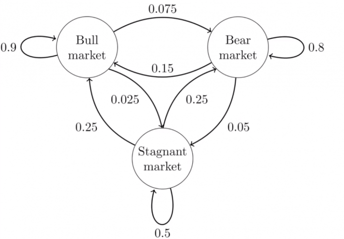 Markov chains are usually represented as state transition diagrams with attached probabilities.