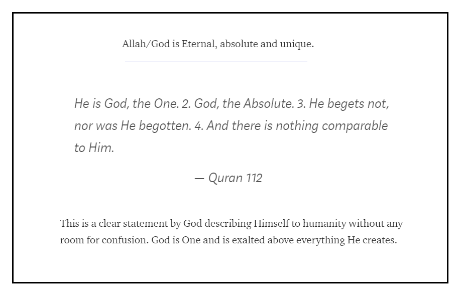 This is a clear statement by God describing Himself to humanity without any room for confusion. God is One and is exalted above everything He creates.