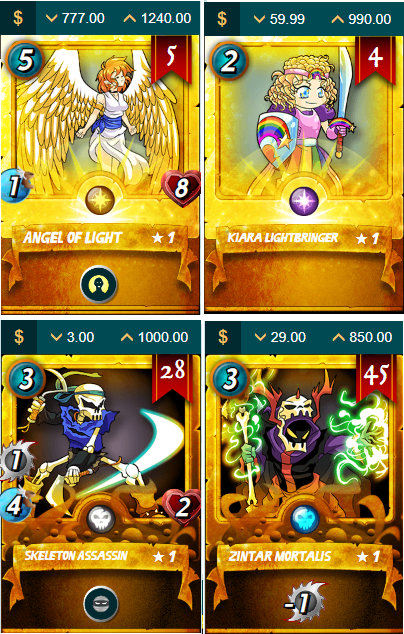 Sorpresa! Le varie tipologie di rarità non sono finite, o almeno non è proprio così. Per ogni carta del gioco esiste la versione GOLD. Cioè una carta tutta quanta dorata e brillantosa. Quando trovate questo tipo di carta dovete proprio essere contenti poiché hanno valori molto maggiori rispetto alle carte normali. Le comuni gold vanno intorno ai prezzi di 2-5 dollari, quelle rare dai 5 ai 30 dollari, quelle epiche dai 30 ai 60 e quelle leggendarie.. Ehm... svariate centinaia di dollari, se non migliaia. Non vi mostri i draghi che è meglio. Guardateci solo se non avete problemi di cuore. Vi lascio uno screen qui sotto per il resto.