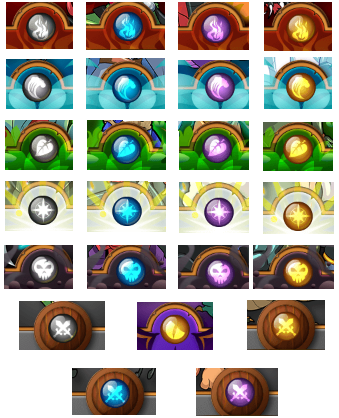 Dopo che avete aperto il mazzo e probabili pacchetti vi accorgerete che le carte hanno più o meno nel loro centro dei simboli come, ad esempio, una fiamma con un colore che può essere grigio o blu. Grigio indica che è una carta comune, mentre blu indica che è una carta rara. Ma se per caso avete aperto un pacchetto avreste potuto trovare anche carte con colori diversi come il viola e il giallo. Il viola indica la rarità epica, mentre quella gialla indica la rarità leggendaria. Anche se forse è facilmente comprensibile, più una carta è rara e più costa. E invece la "fiamma" che ho citato poco fa che cosa indica? La fiamma indica le creature di fuoco, le quali, però, non esistono solo di questo elemento. Esistono, infatti, i simboli di acqua, terra, vita, morte, neutrale e DRAGHI. I draghi sono i più fighi, ma è un mazzo che costa davvero tanto. Qui sotto vi mostro i vari simboli di rarità e i simboli di elemento.
