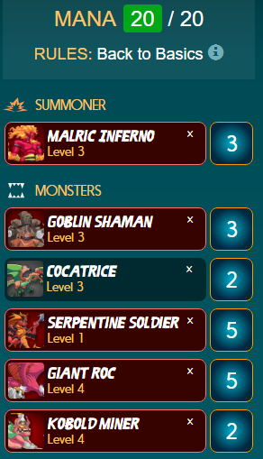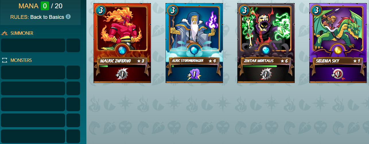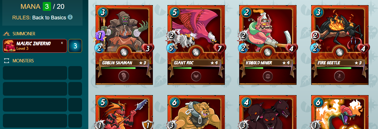 Leggete la scritta "mana 0/20"? Quella scritta identifica che hai 20 mana a disposizione, ma attualmente ne stai usando zero. Se guardate a sinistra sui famosi summoner, potete notare un numero "3". Quello è il costo di mana del vostro summoner. Dopo che avete scelto il vostro eroe elementale, basta che ci cliccate sopra e lui automaticamente entrerà nella casella "Summoner".