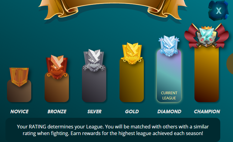 Per concludere, il gioco ha dei premi. Ogni mese c'è una sessione di gioco e in funzione della graduatoria finale si hanno premi in pacchetti e se si è molto bravi, anche premi in denaro cripto. Qui sotto vi metto uno screen con i vari rank principali.