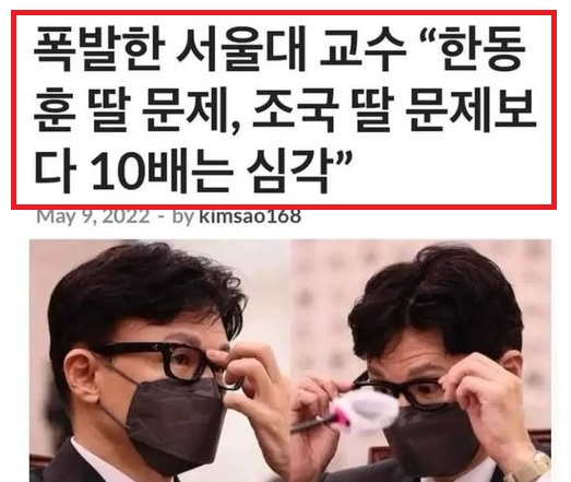 한동훈 딸 한지윤 문제가 조국 딸 문제보다 심각
