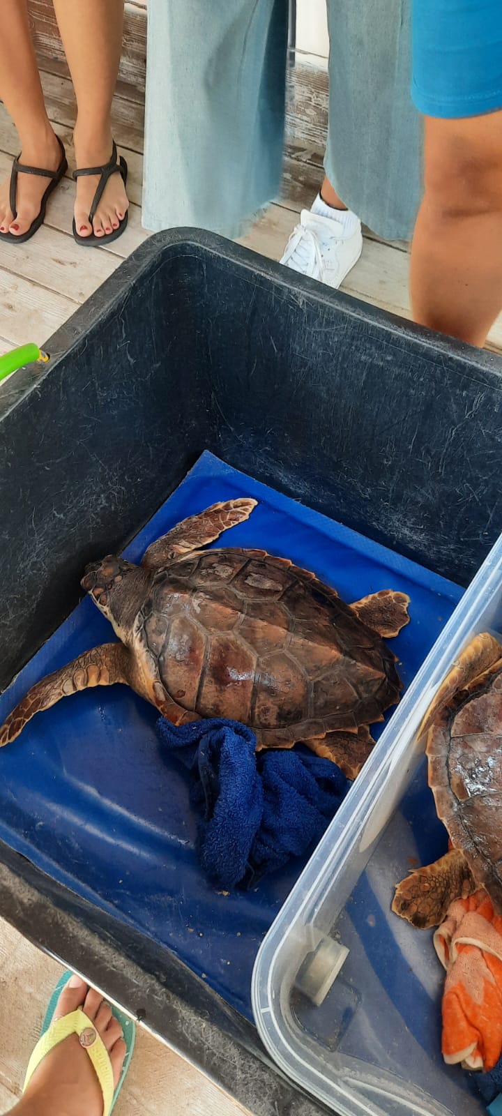 E' stato emozionante per gli ospiti, non capita tutti i giorni per gente di citta' di vedere due tartarughe marine liberate ed in procinto di tornare nel loro ambiente.