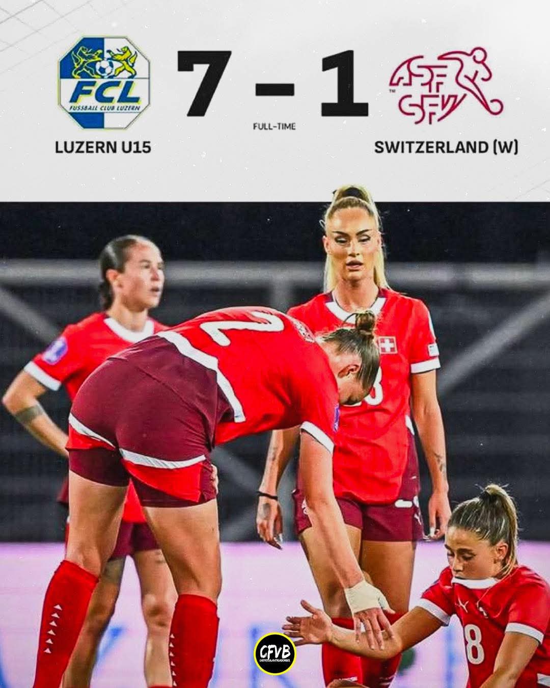 Recentemente si e' giocata una partita amichevole a porte chiuse fra la nazionale di calcio femminile svizzera e l'under 15 maschile del Lucerna.
