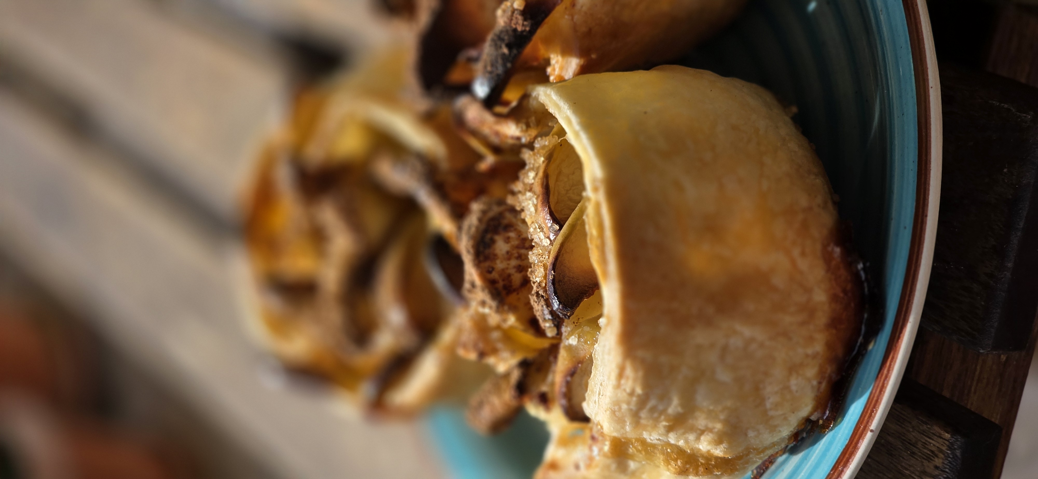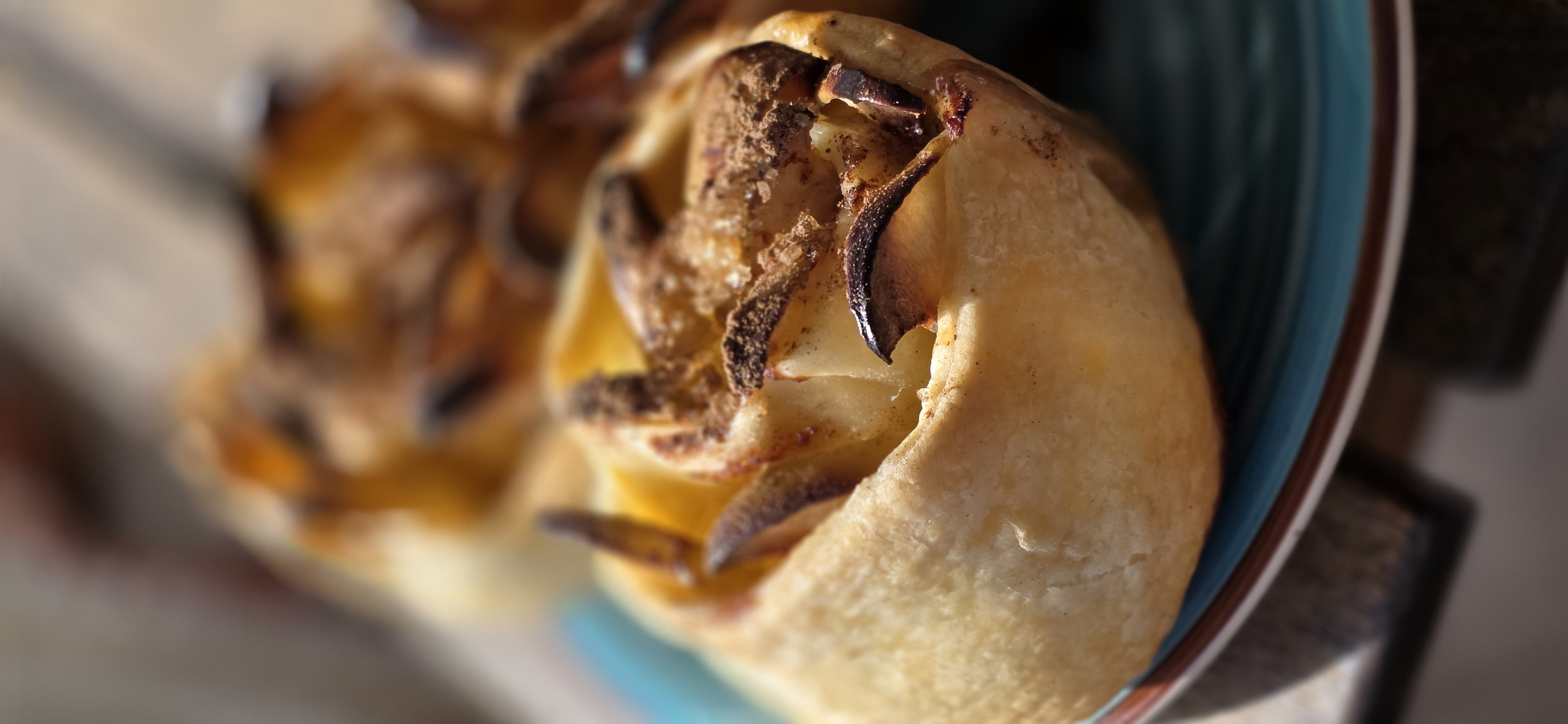 Il calore. Ah, il calore! Questo dessert è un'esperienza termica, una coccola per l'anima. Il vapore aromatico sale, avvolgendo il viso con la sua carezza zuccherina e speziata. Il primo boccone è un incontro esplosivo: la croccantezza immediata della sfoglia cede alla morbidezza fondente delle mele. Il sapore è complesso, stratificato. Non c'è solo il dolce, ma l'acidulo vivace della mela, il terroso conforto della cannella, e sotto tutto, il sapore pieno e intenso del burro caramellato.