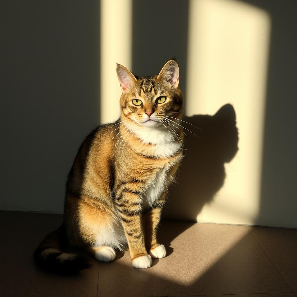 Mysterious and graceful, the cat in the shadow embodies the essence of feline enigma, a silent sentinel within the soft curtain of dusk.