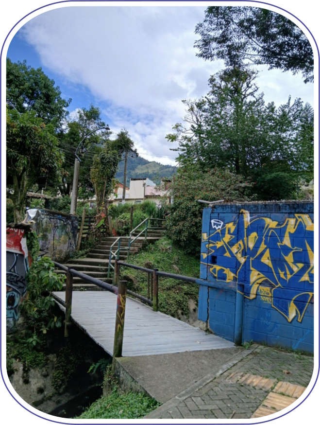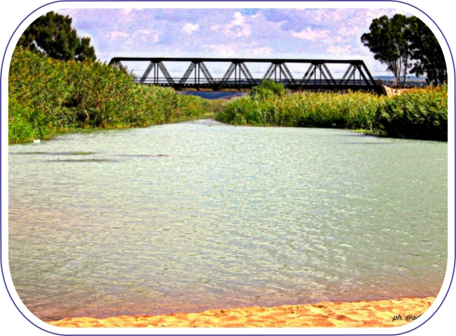 con un ponte sopra un fiume.