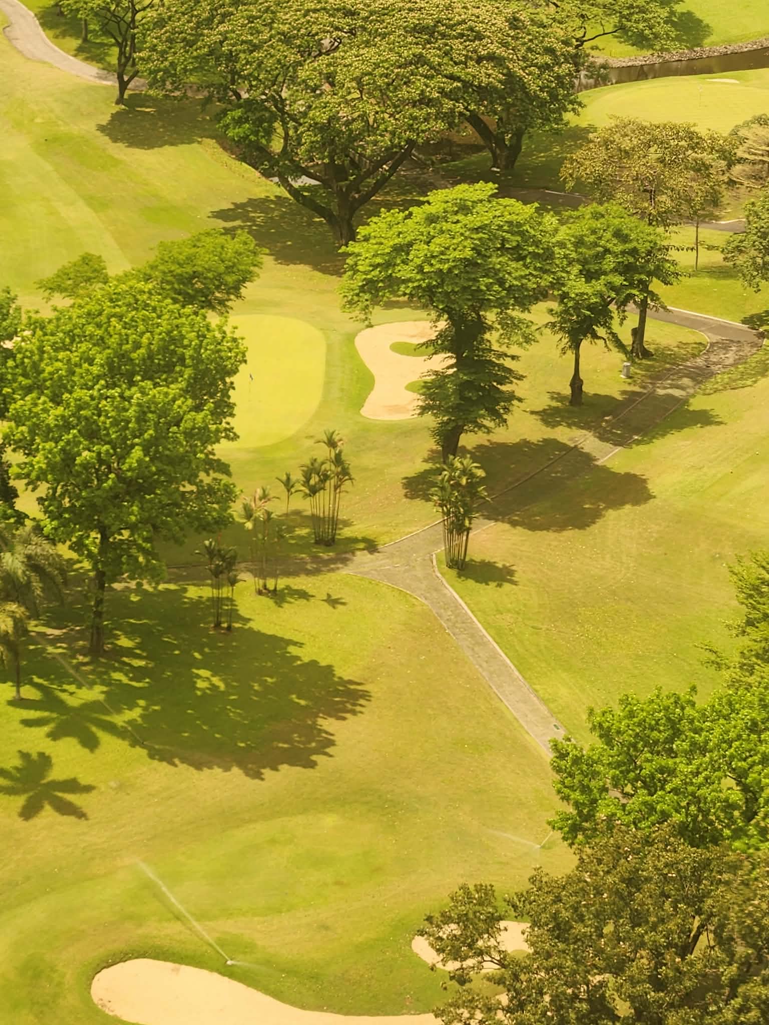 This is a shot from the 26th floor of the condominium unit we stayed in during a vacation to Manila, Philippines. The condominium is located beside a 18-hole golf course. From the window I saw the greens and the shadows cast by the trees and I just had to take photos of them. I have this fear of heights and needless to say the soles of my feet felt like there were a thousand needles pricking them and a tingling sensation crept from my calves upto my hamstring while I was taking the pictures. But I got my photos despite the feeling.