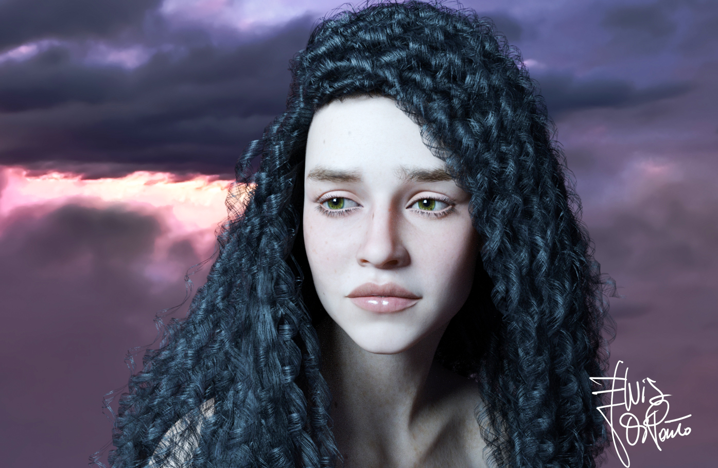 Ritratto molto dettagliato di una ragazza dallo sguardo malinconico in digital art.