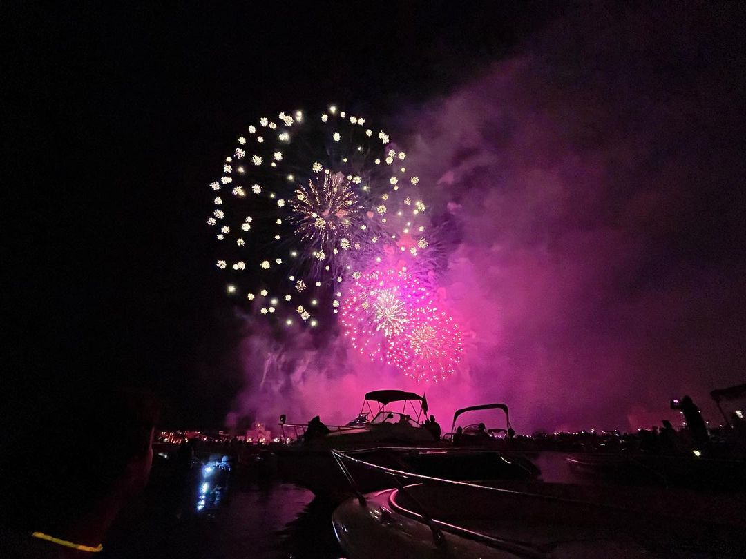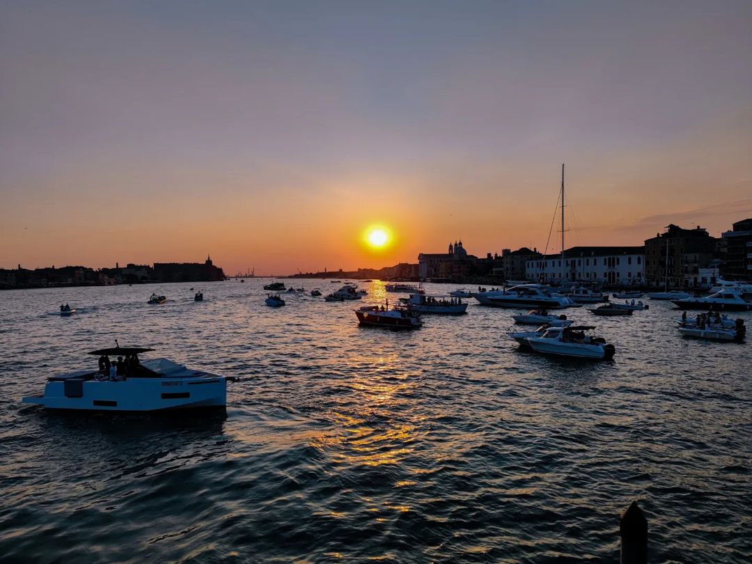Lo sparo dei fuochi d'artificio è avvenuto alle 23:30, ma noi già alle ore 20 eravamo in posizione per prenderci il posto con la barca.