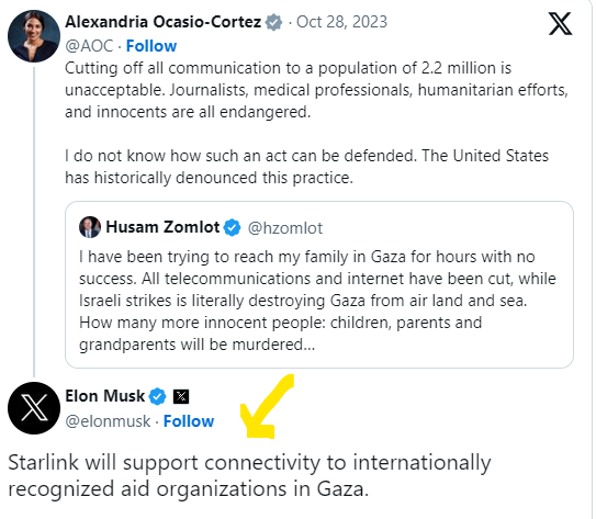 - ELON MUSK - Starlink Disponibile per Organizzazioni Umanitarie a Gaza. / - ELON MUSK - Starlink Available for Humanitarian Organisations in Gaza. [Multilanguage]