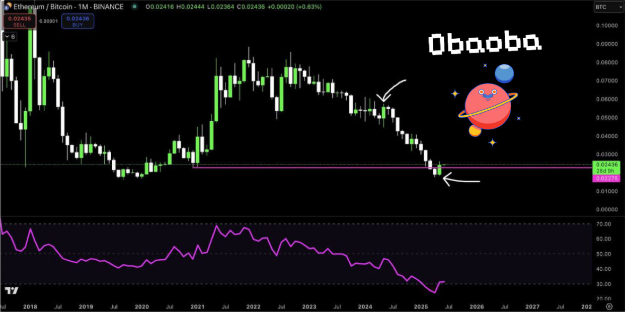 One of the best charts to pay attention to is therefore ETHBTC, it has been recording new lows for 4 years now.