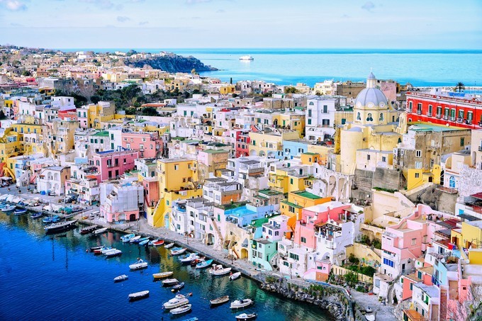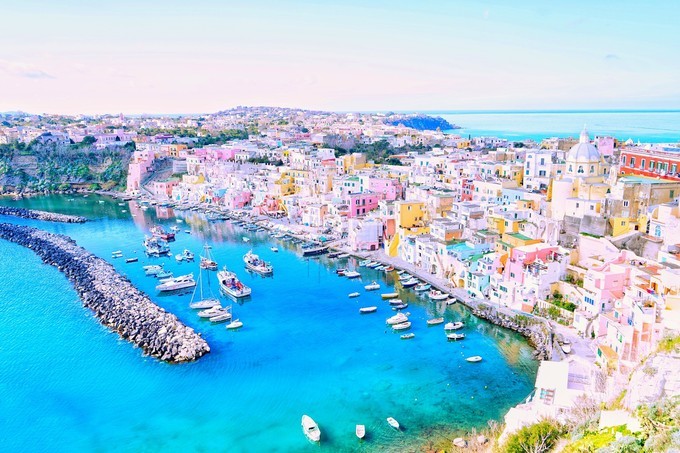 The blue bay of Naples, the boats parked at the pier, the cascading colorful houses, and the lovely fairy tale world. There are so many people here, it's a visual paradise for you. The way to open here is simple and casual. You can bask in the sun, play in the sea, walk on the breezy pier, wander on the brightly colored paths, and see the Saint-Michel church and the birds The museum, all you see on the island are gentle and hospitable islanders, half of the slope is covered with macarons, very beautiful.