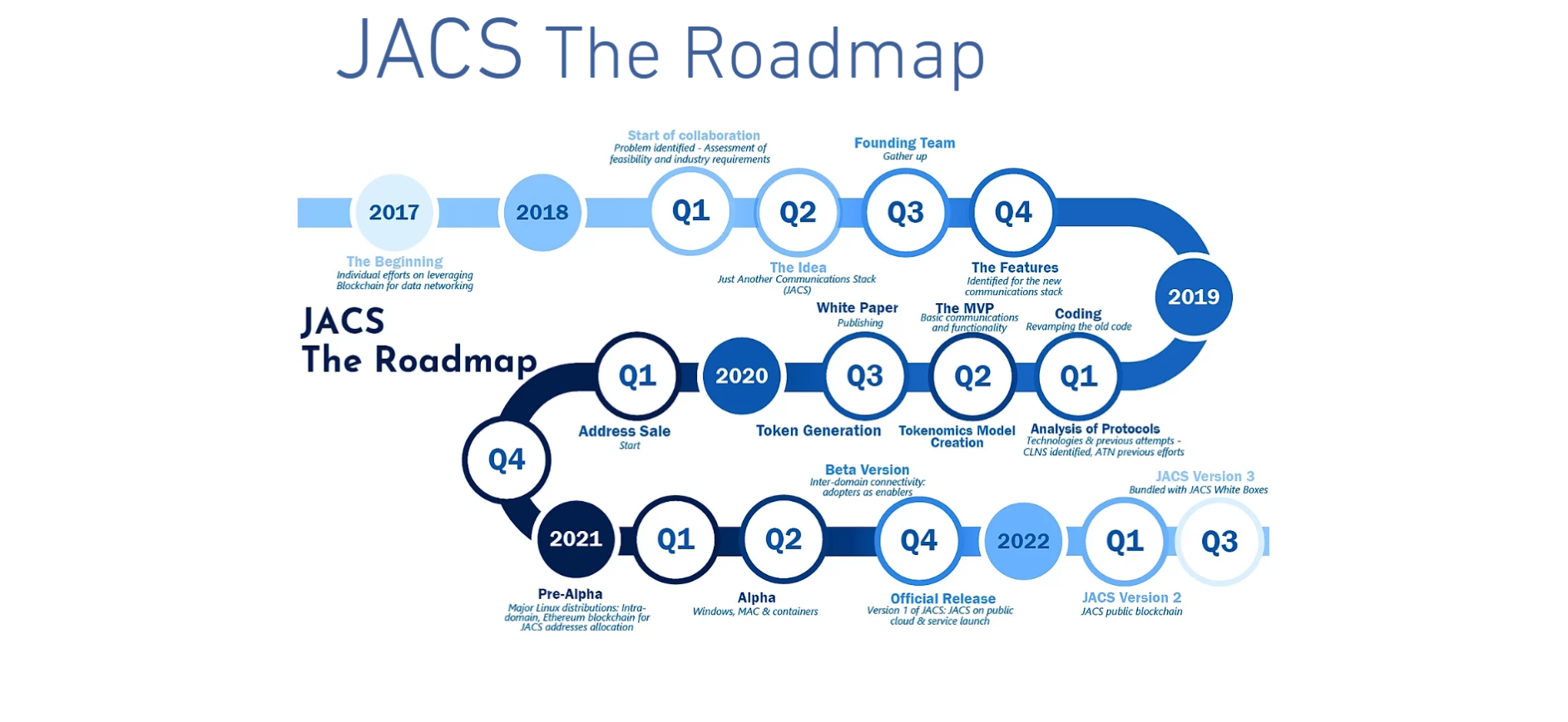 JACS simply and effectively provides a new communications stack, totally different from TCP/IP and that aims to change the way data networks currently work. JACS is a hybrid solution, combining blockchain with Connection-Less Network Services (CNLS) which offers a staggering 160 bits to play with.