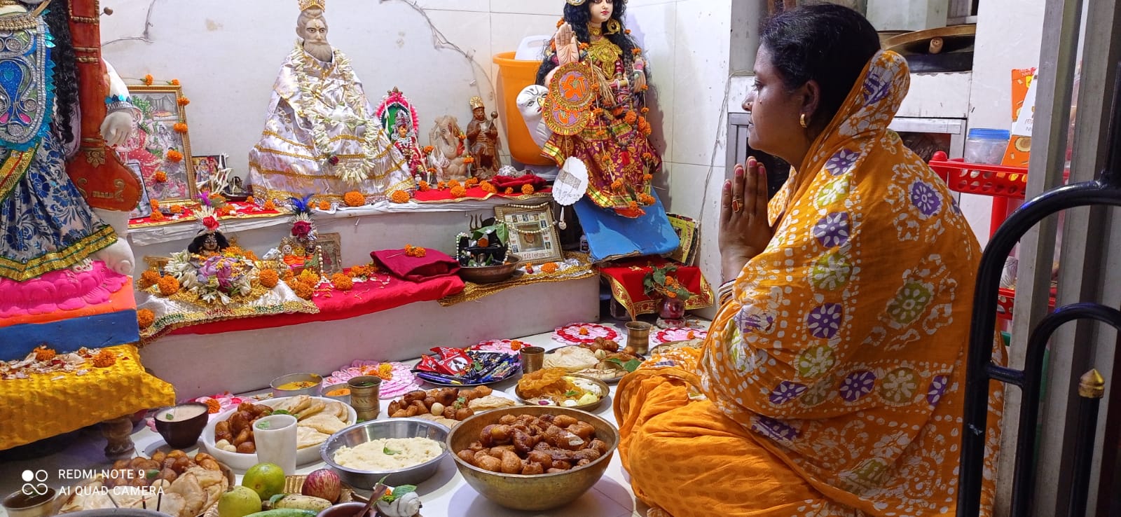 স্নান করানো হয়ে গেলে আস্তে আস্তে খুব সুন্দর ভাবে গোপালকে সাজিয়ে আসনে রেখে গোপালের জন্য জন্মাষ্টমীভোগ তৈরি করা শুরু করলো।